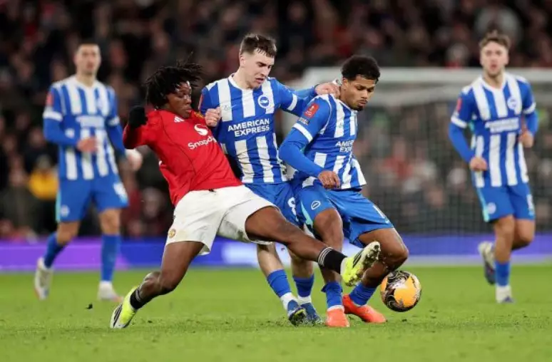 A equipe anfitriã só melhorou na reta final da partida, após a entrada de Casemiro no lugar de Ugarte no meio de campo. Aos 40, Sesko aproveitou a cobrança de escanteio de Bruno Fernandes e desviou de cabeça para o gol. Apesar da pressão dos anfitriões nos minutos finais e nos acréscimos, o Brighton, 11º colocado da Premier League, conseguiu se segurar e avançar na competição.