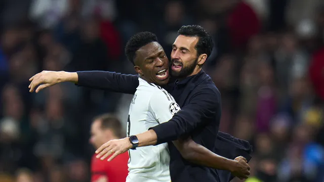 Vini Jr. abraça Arbeloa em Real Madrid x Monaco (Foto: Diego Souto/Getty Images)
